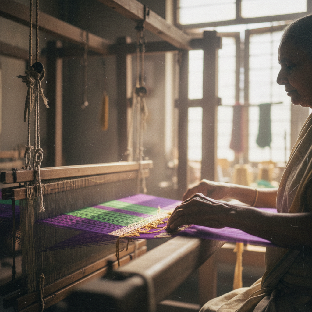 विणकरांच्या गावांतल्या करघ्यांवर. आम्ही थेट कारागिरांपर्यंत पोहोचतो,